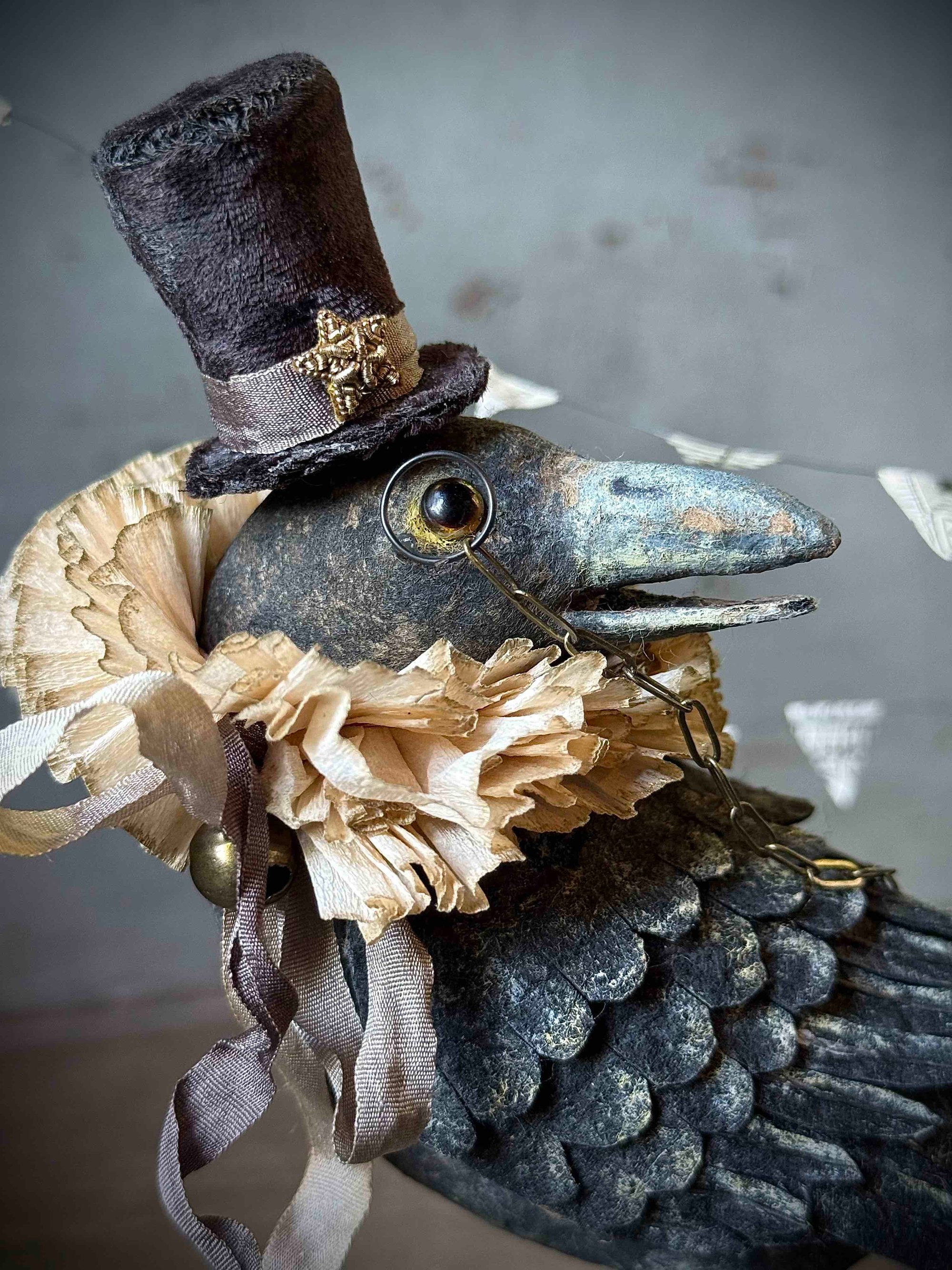 This grand Victorian Fancy Crow is my Halloween Celebration Piece for 2025. Larger and more elaborate than my smaller crows, it embodies the full spirit of an Old World Halloween.