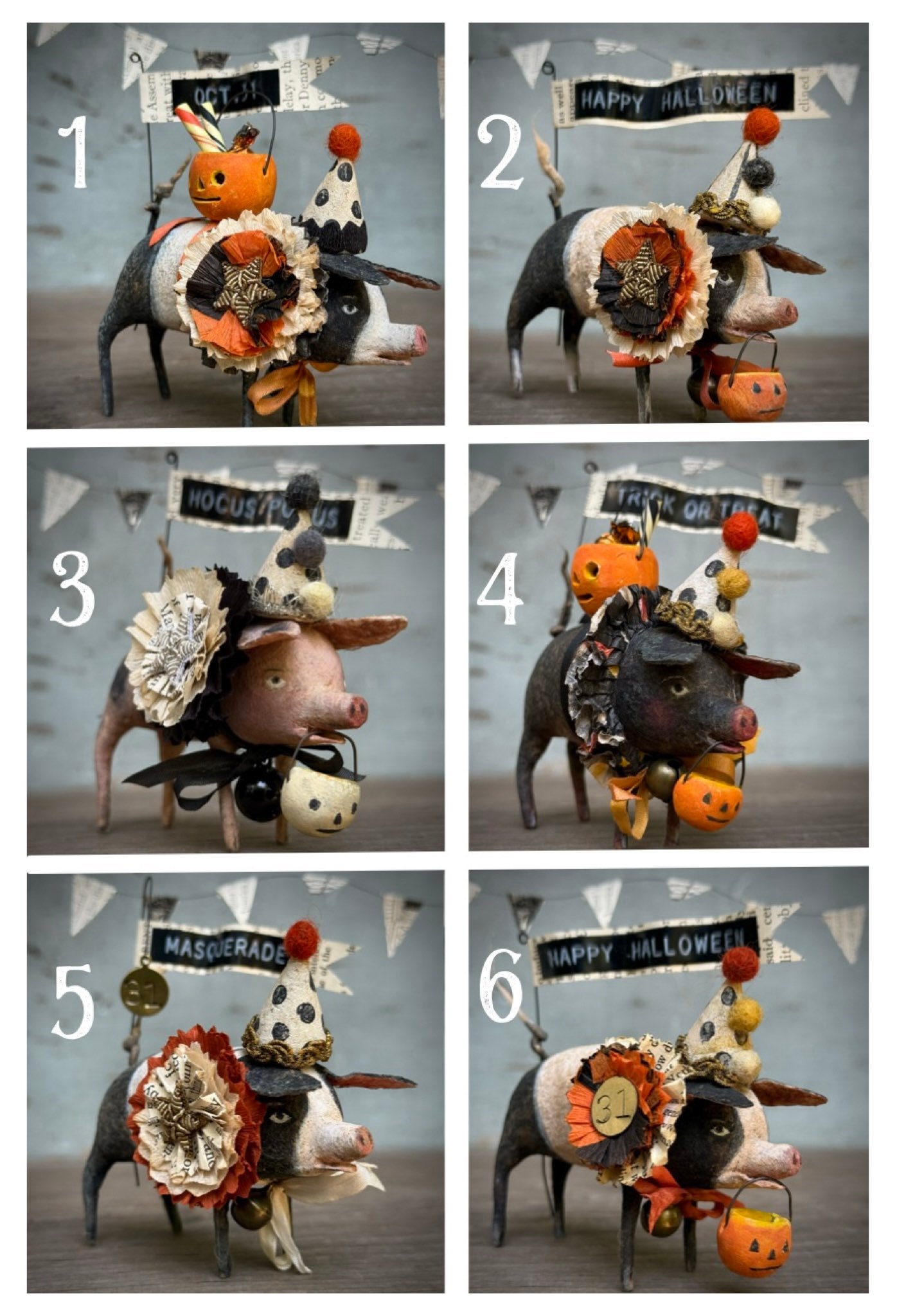 ***This listing is for ONE individual Halloween-decorated, spun cotton pig. There are 6 variants to choose from labeled 1, 2, 3, 4, 5, or 6. Please be sure to select your desired variant to add to your cart.***