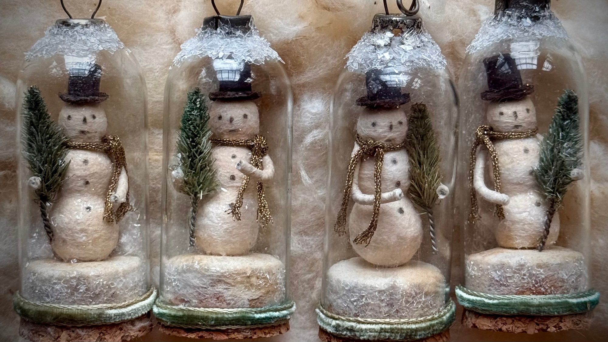 In this Private Workshop kit, I’ll guide you step-by-step through creating antique-inspired snowman snow globes—complete with a frosted glass dome, softly falling “snow,” and a charming spun cotton snowman that feels as though it’s come from another era. These pieces are perfect for winter decorating, gifting, or adding to a cherished holiday collection.
